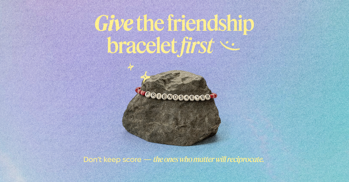 As Robin Dunbar says, “Friendship is the single most important factor influencing our health, well-being, and happiness”. But, it takes hard work and intentionality, an endeavour that’s often unsexy but almost always worth it. Plus, you may collect a whole stack of friendship bracelets along the way (our girl Tay Tay was on to something there).