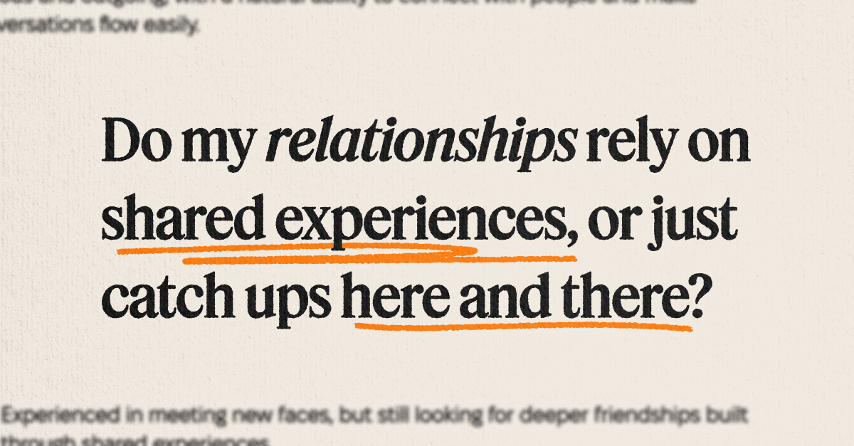 Depth usually comes from doing life together, not just talking about it. This question helps you notice whether your friendships are built on continuity and overlap, or whether they exist mainly in isolated pockets of time.